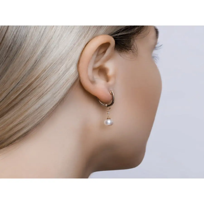 Серьги из золота с жемчугом и фианитами 585 пробы